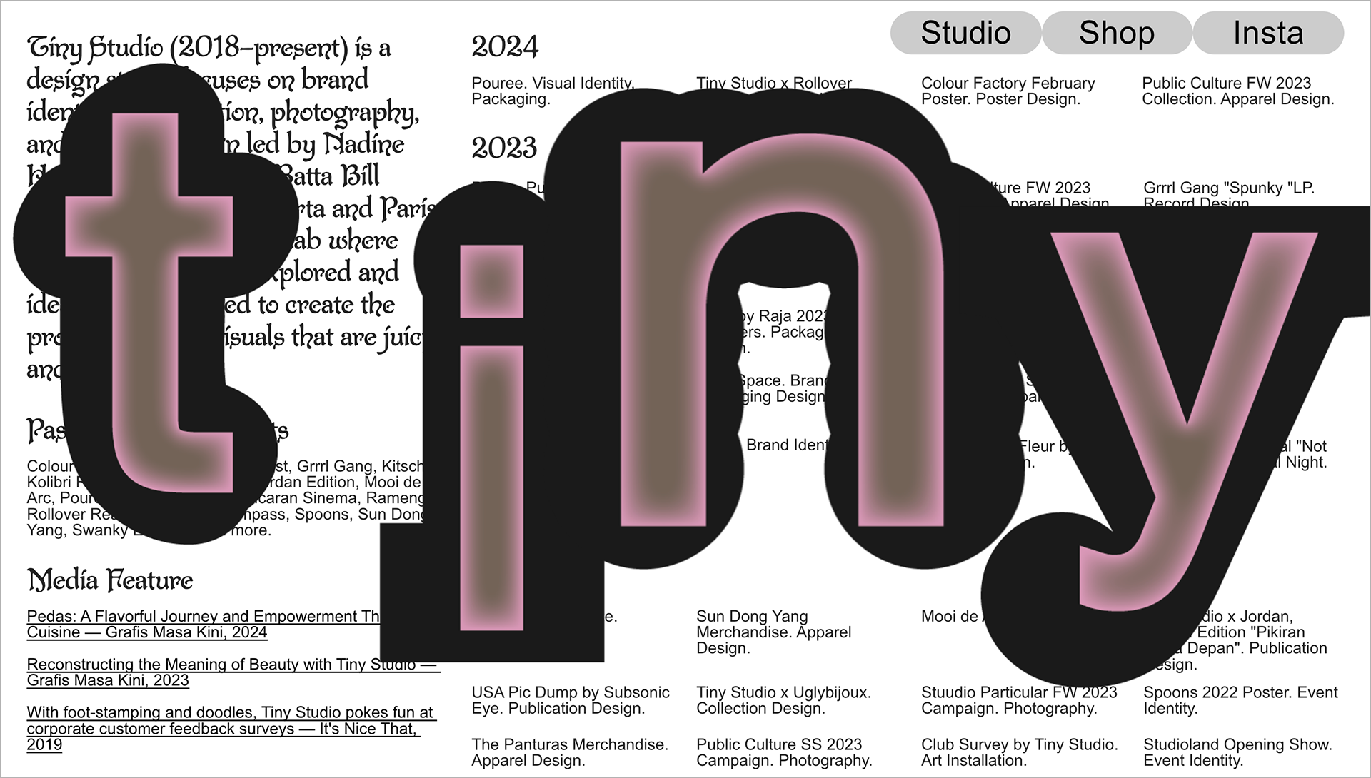 Another example is “Tiny Studio”. Visit their site, and you'll be greeted by huge letters filling the screen that, after a moment, slide apart. It's a simple yet impressive way to grab your attention and make a memorable first impression.