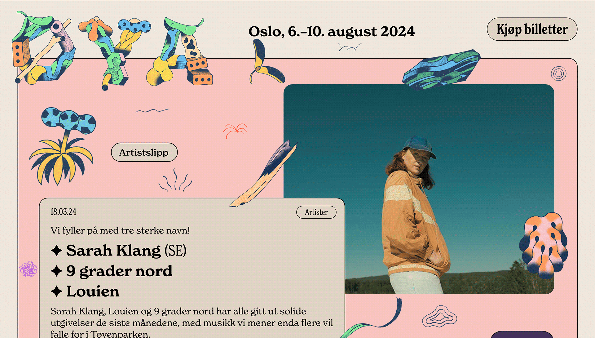 Then there's the “Oya Festivalen” website. It's full of life, with tiny animations that make the page sparkle. But the real magic lies in how scrolling through the site feels like leafing through a fun book. Each scroll invites you to see more, making the whole experience inviting and exciting.