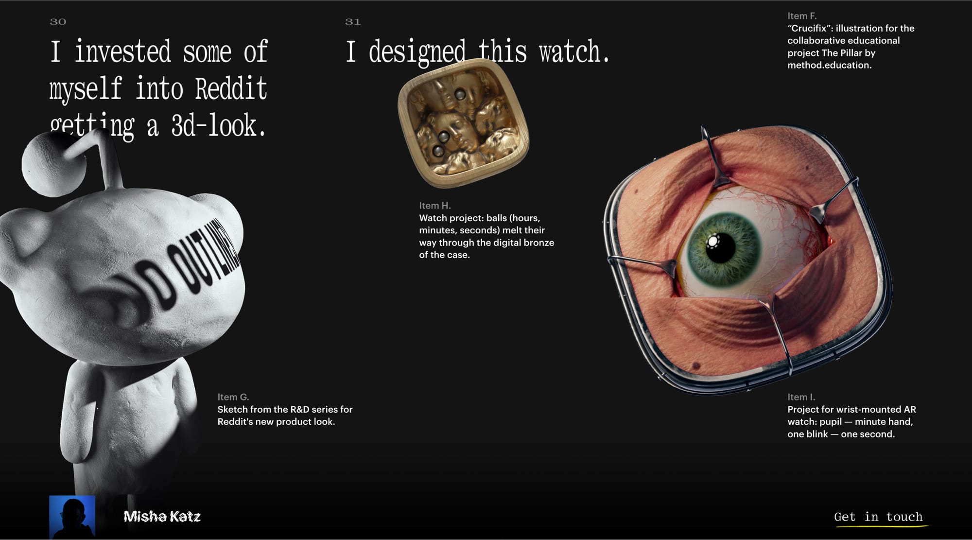 Interestingly, Katz’s personal website wasn’t his own creation. It was crafted by a fellow designer. Long before the site took shape, Katz had been formulating his manifesto. This coincided with a pivotal shift in his career: he left Reddit, marking the end of his corporate journey, and refocused on the 3D design school he had established years earlier.