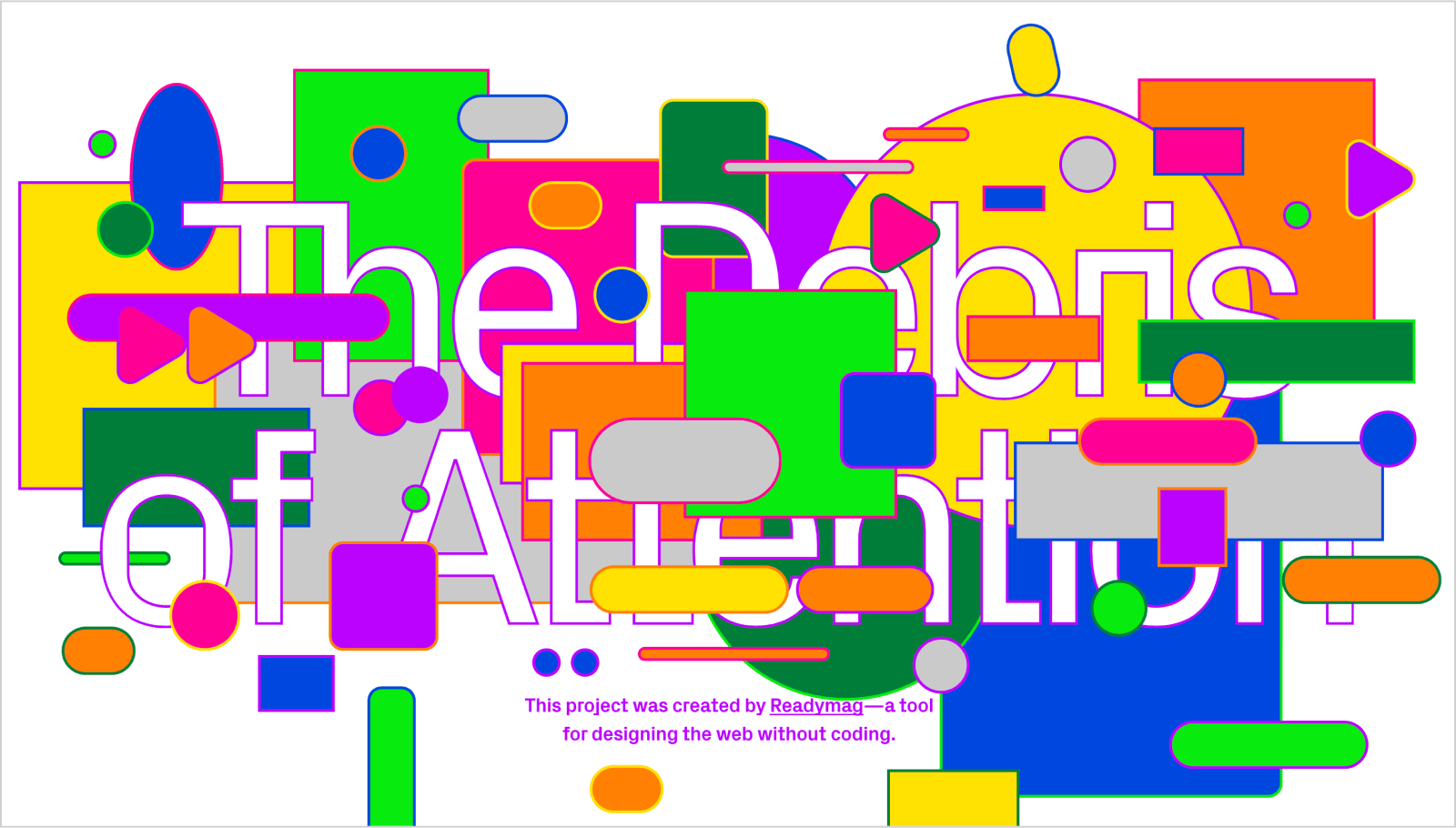 The web is super flexible, giving designers a ton of room to create. Thanks to its adaptability, websites can change up their look, feel, size, shape, or structure. Plus, using no-code tools like Readymag lets you bring your ideas to life.