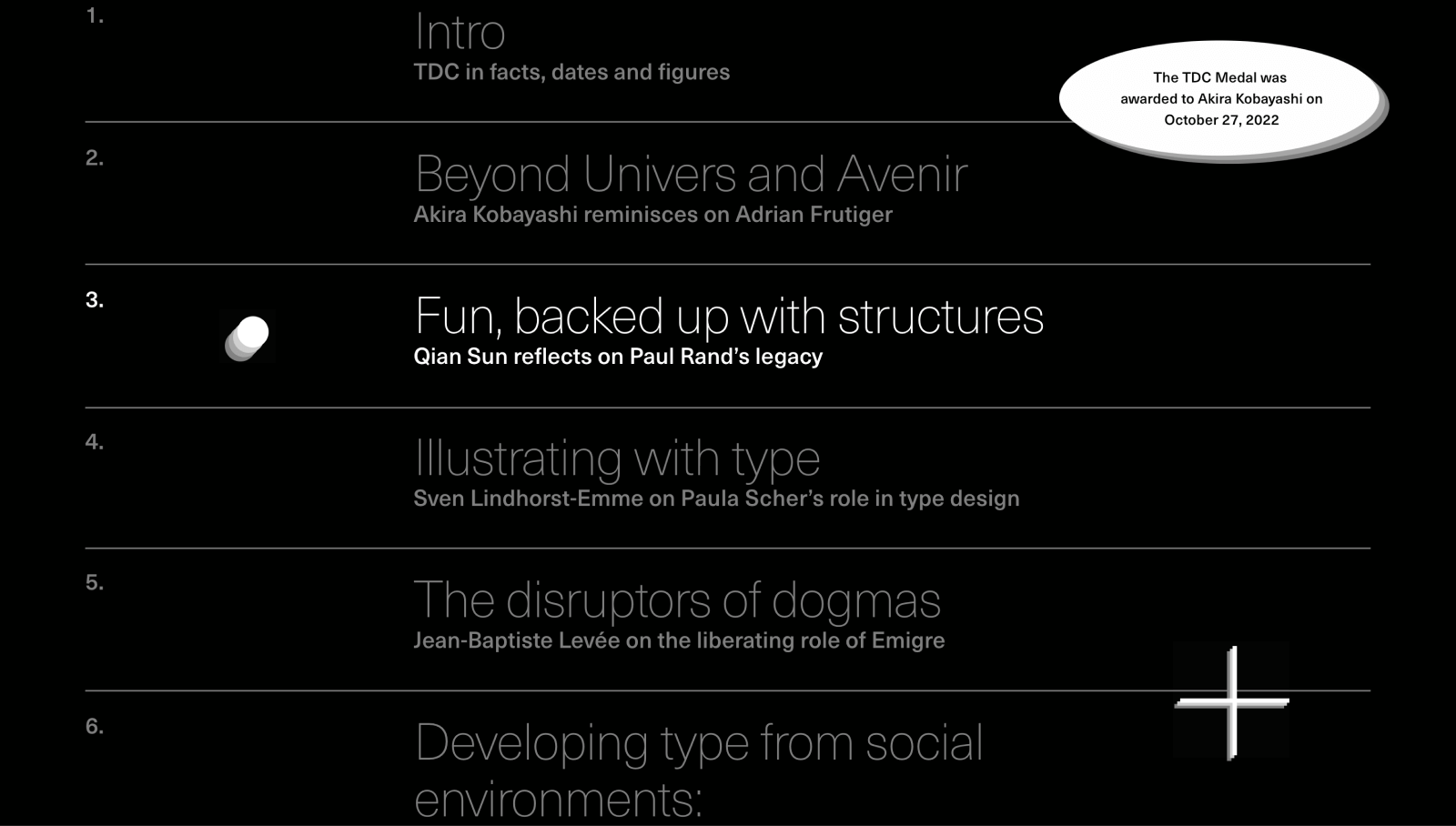 A standout example is the 2022 collaboration between the Readymag team and the Type Directors Club for "The Faces Behind Typefaces". This project racked up more media mentions in one month than projects usually get in an entire year. The secret sauce? It's all about the content. The project wove together deep insights from modern leading type designers, with stories from legends like Paul Rand, Emigre, Paula Scher, and Ruben Fontata, among others.
